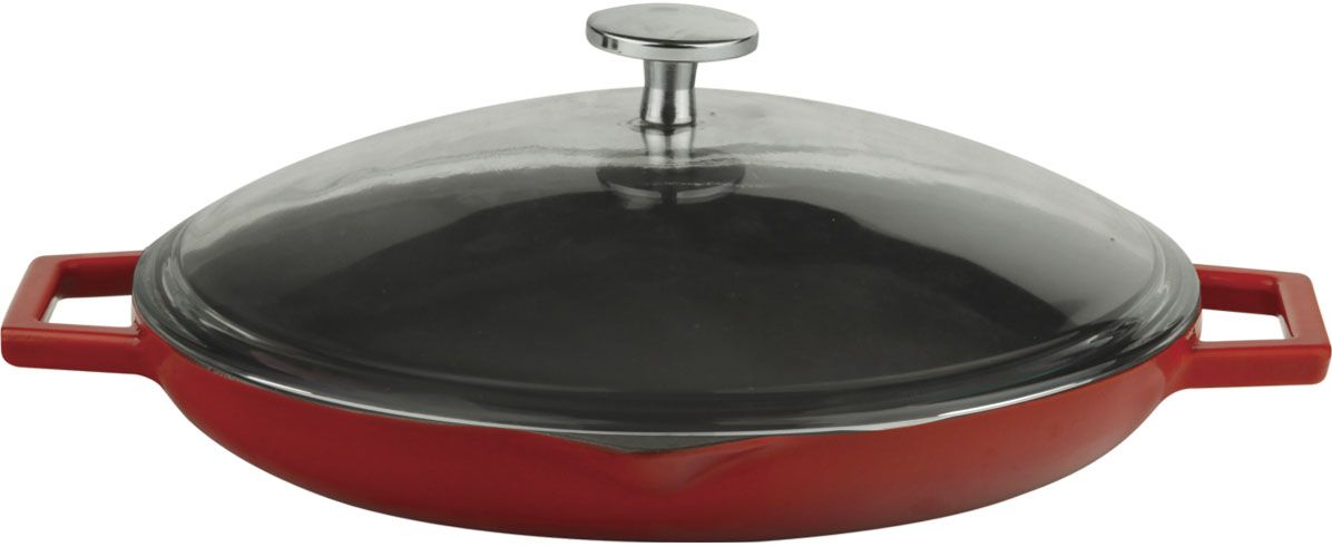 Сковорода d=30 см. чугун, красная, крышка стекло LAVA