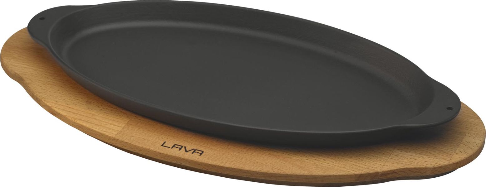Сковорода 29,5*15,5 см. чугун. овальная "рыбка" на дерев. подставке, черная "ECO" LAVA