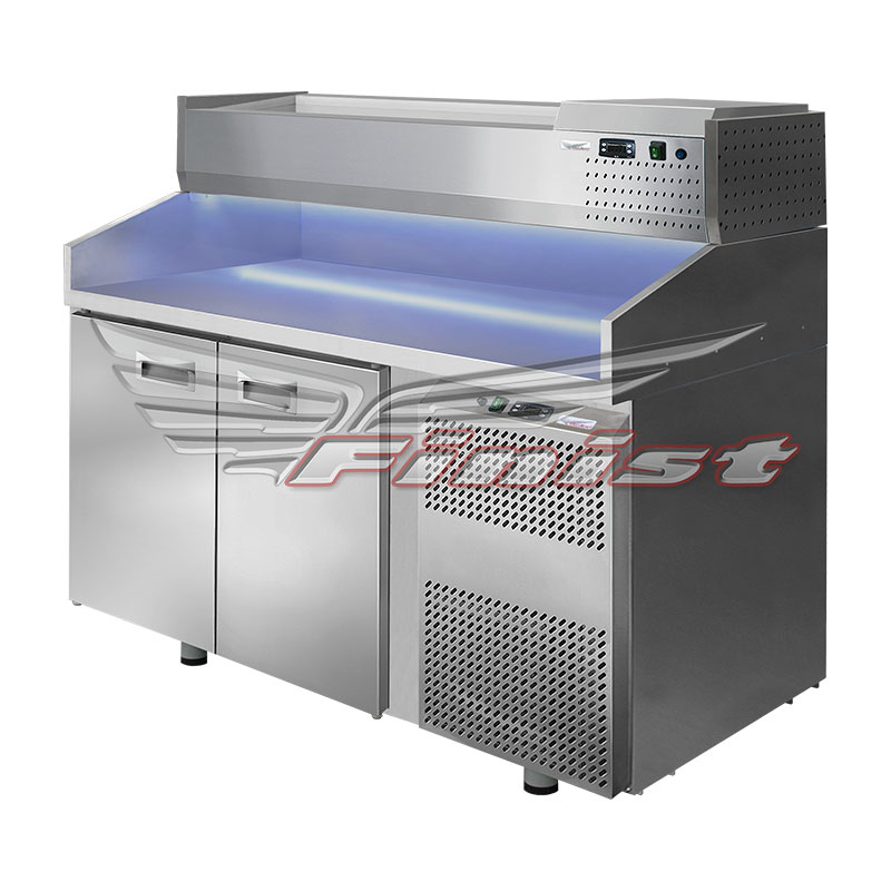 Стол холодильный для пиццы с нержавеющей столешницей и нержавеющими бортами